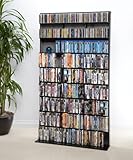 Media Tower Elite has 9 fixed shelves for storage of CDs, DVDs, and Blu-rays. Blu-ray storage optimized. Capacity for 837 CDs or 531 DVDs or 630 Blu-ray Particle board and MDF with paper laminate Simulated carbon fiber back panel